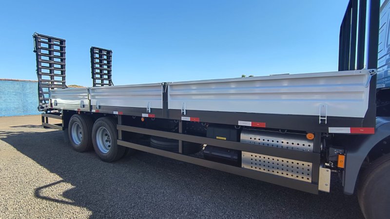 Essa característica não só otimiza o espaço útil da prancha e melhora a aerodinâmica do conjunto, como também protege o mecanismo da rampa contra danos e intempéries. Com acionamento robusto e seguro, a rampa invertida da CRAMAQ garante facilidade e agilidade nas operações de carga e descarga, minimizando esforços e aumentando a eficiência.