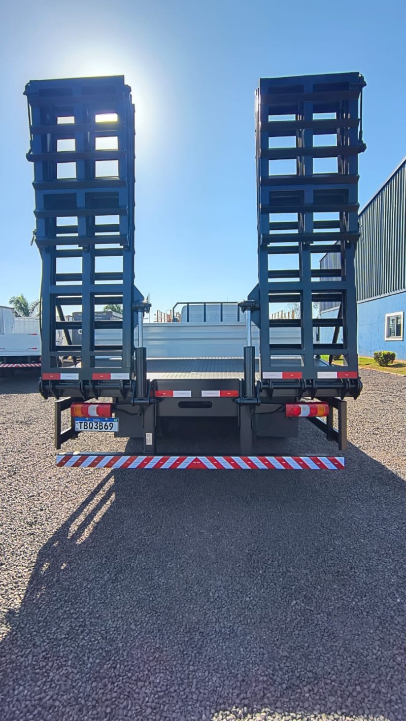 Apresentamos a Carroceria Carga Prancha com Rampa Invertida da CRAMAQ, a inovação que redefine a praticidade e a segurança no transporte de máquinas, equipamentos pesados e veículos.